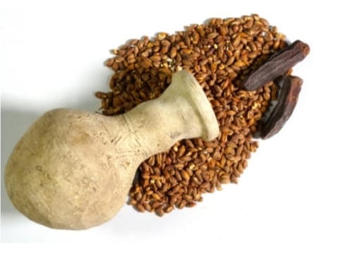 متحف الأقصر للفن المصري القديم: يعرض إناء من الفخار به اتمر ومجموعة من الحبوب.