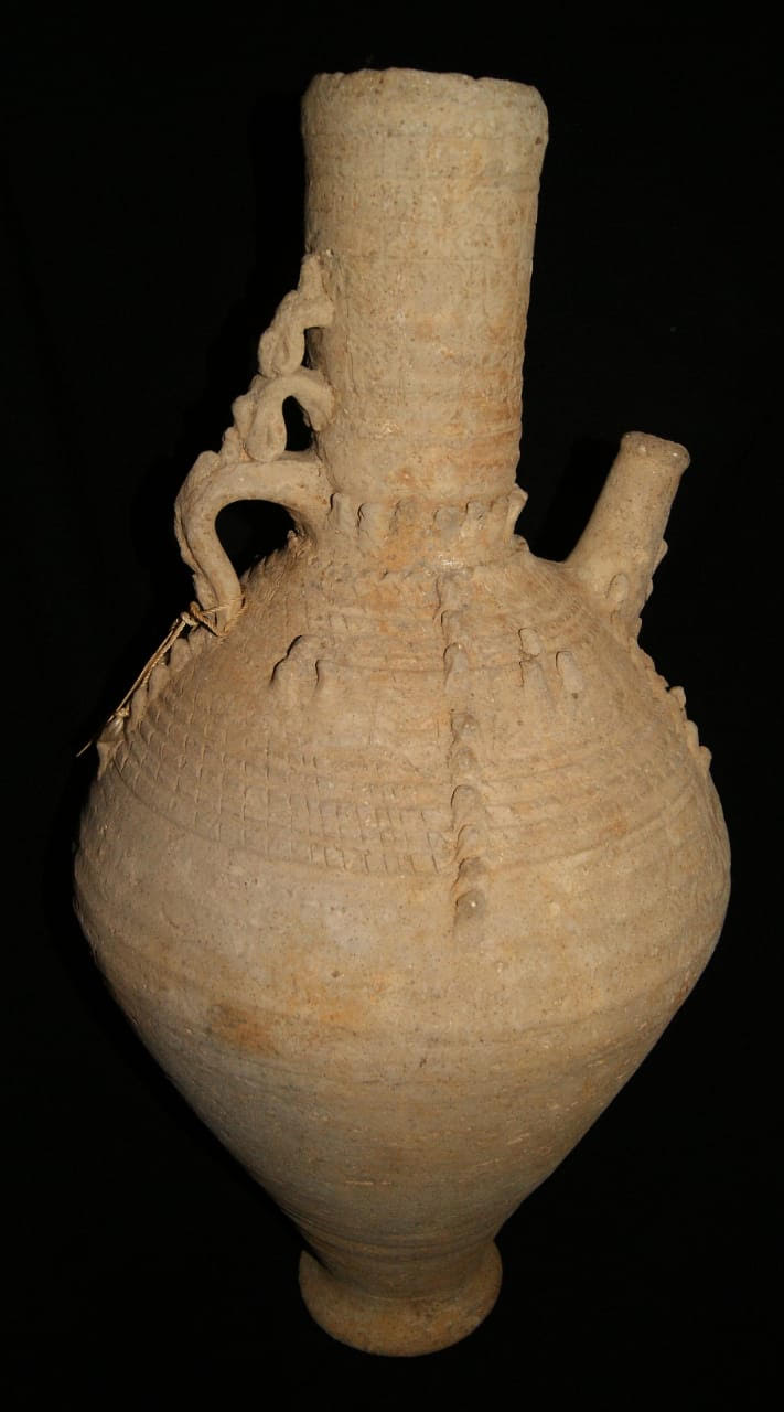 متحف الغردقة: يعرض أناء دائري الشكل به ثلاث مقابض ربما كان يستخدم للتطهير أو غسل  الأيادي أو لطقس من طقوس النظافة عند المصري القديم