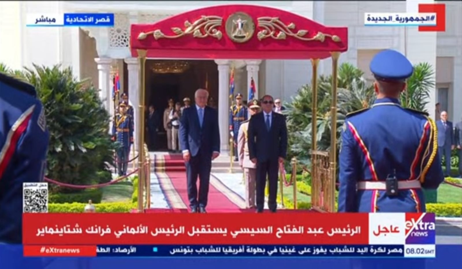استقبل الرئيس عبدالفتاح السيسي، في قصر الاتحادية، الرئيس الألماني فرانك شتاينماير، بمراسم استقبال رسمية، وذلك حسبما جاء في بث مباشر لقناة “اكسترا نيوز”.
