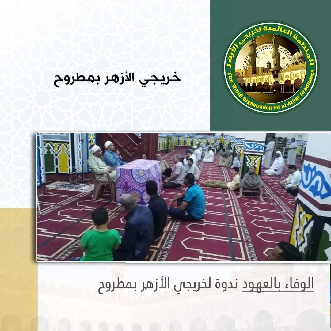 عقد فرع المنظمة العالمية لخريجي الأزهر بمطروح، ندوة توعوية بعنوان: “الوفاء بالعهود ومكانته العظيمة في الإسلام”، بمسجد القرية الحمراء، بمدينة الحمام.