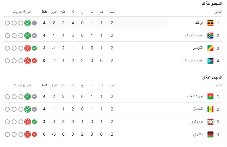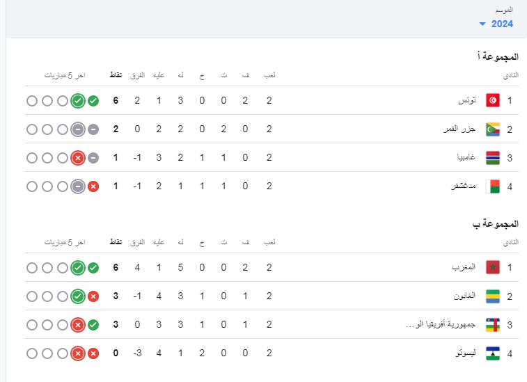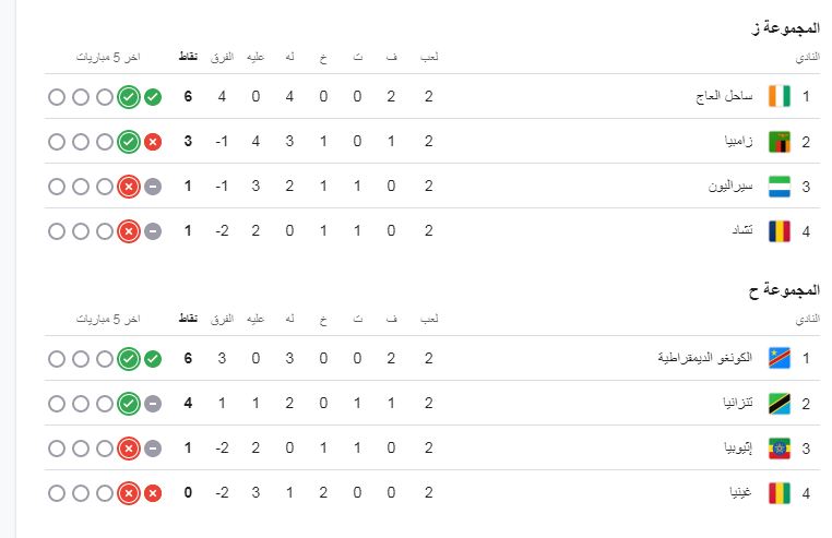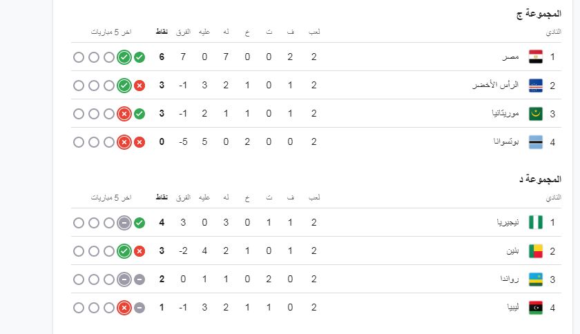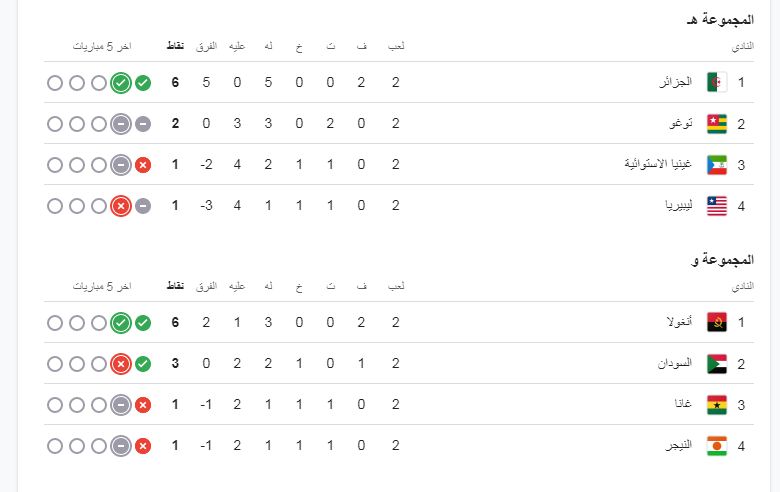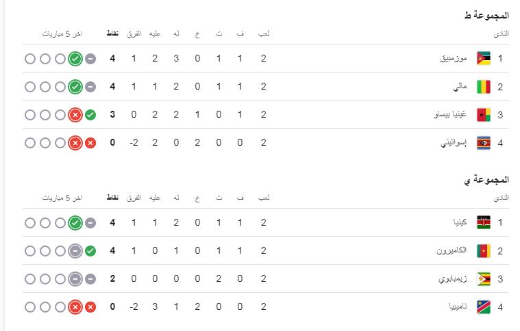 جدول ترتيب مجموعات تصفيات كأس أمم أفريقيا 2025