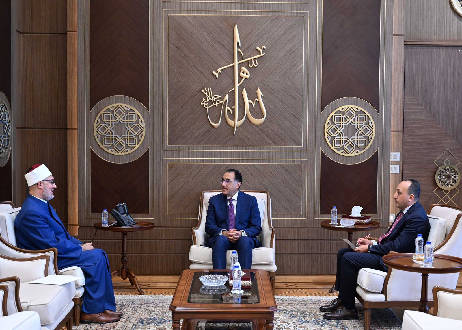 التقى الدكتور مصطفى مدبولي، رئيس مجلس الوزراء، اليوم، الدكتور نظير عياد، مفتي الجمهورية، رئيس الأمانة العامة لدُور وهيئات الإفتاء في العالم، وذلك في إطار مناقشة عدد من القضايا والموضوعات.