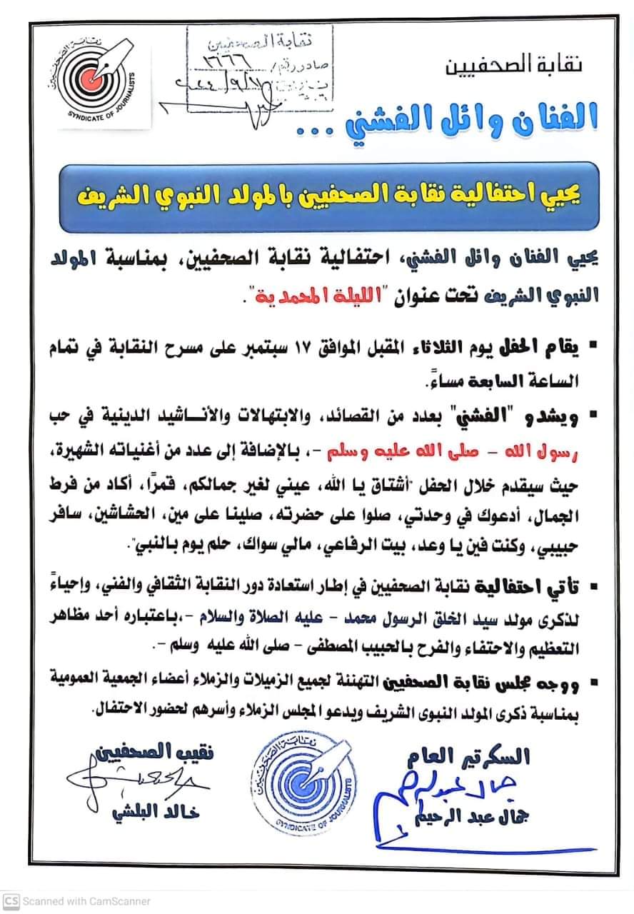 يحيى الفنان وائل الفشني احتفالية نقابة الصحفيين، بمناسبة المولد النبوي الشريف تحت عنوان "الليلة المحمدية".
