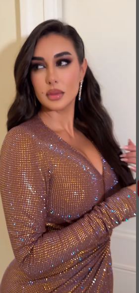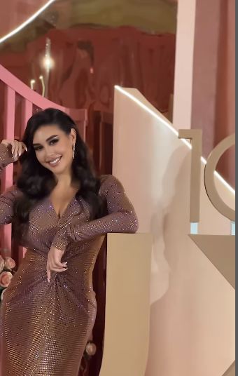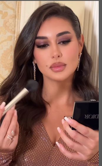 ومن الناحية الجمالية، اعتمدت تسريحة شعر جذابة على طريقة الويفي الواسع ووضعت مكياجًا صاخبًا مرتكزًا على الألوان الترابية مع تحديد عينيها بالكحل والماسكرا السوداء ولون الكشمير في الشفاه.