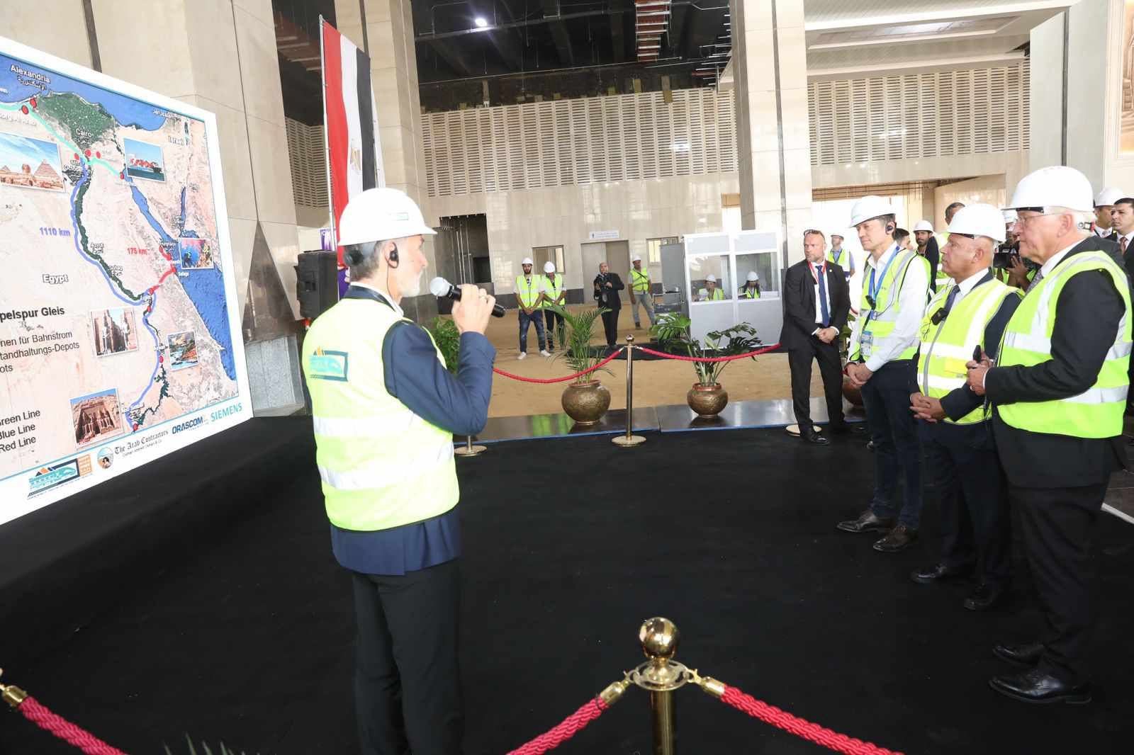 بعدها توجه الرئيس الألماني ونائب رئيس مجلس الوزراء للتنمية الصناعية وزير الصناعة والنقل والحضور إلى نقطة صيانة القطارات التي تقع على مساحة 50 فدانا وتستوعب عدد10 قطارات حيث تم تفقد القطار الديزيرو الأول الذي تم تصنيعه في مصانع سيمنز الألمانية وتم توريده لمصر منذ عدة أشهر وكذلك الجدول الزمني الخاص بتصنيع وتوريد الوحدات المتحركة للخط الأول من الشبكة حيث تم الانتهاء بشكل كامل من تصنيع عدد ثلاث قطارات سريع (فيلارو) وجاري تصنيع قطارين آخرين من إجمالي 15 قطارات سريعة مخصصة للخط و تم الانتهاء من تصنيع عدد خمس قطارات إقليمية (ديزيرو) تم شحن أحدهما إلى القاهرة وجاري تصنيع عدد سبع قطارات أخرى وذلك من إجمالي 34 قطارا إقليميا مخصصة للخط بالإضافة إلى الانتهاء من تصنيع عدد ۲ جرار كهربائي للبضائع من اجمالي 14 جرار بضائع.