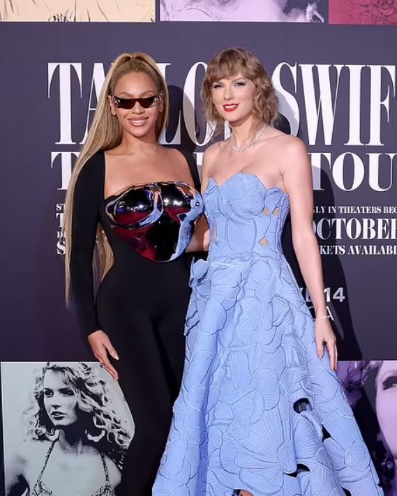 وارتدت تايلور سويفت شورتًا قصيرًا أسود اللون أسفله أظهر ساقيها، وأكملت إطلالتها بحذاء أسود طويل من الجلد.