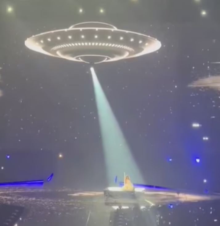 وارتدت تايلور سويفت بدلة من الجينز مطبوع عليها نفس شكل السفينة الفضائية مع نفس حذاء البوت الذي اعتمدت في إطلالتها السابقة.