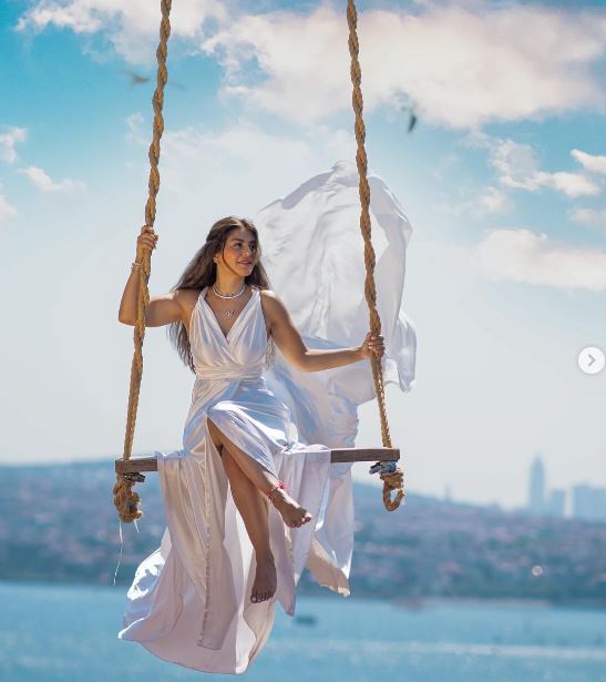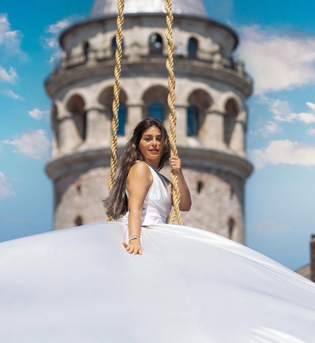 وبدت منة فضالي بإطلالة أنوثية تمزج بين البساطة والجرأة في آن واحد، حيث ظهرت في الصور وهي تطير في الهواء، مرتدية فستانًا طويلاً مجسمًا، مكشوف الظهر، ينتمي لقصة الـ v، واتسم بشق مثير كشف عن أحد ساقيها.