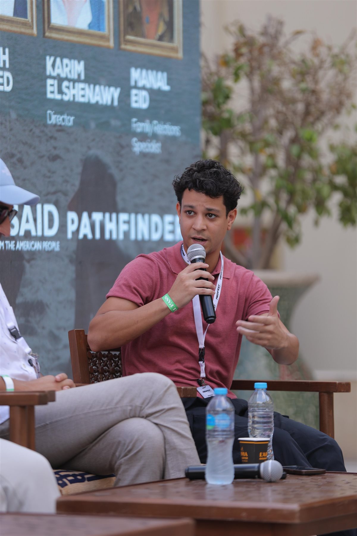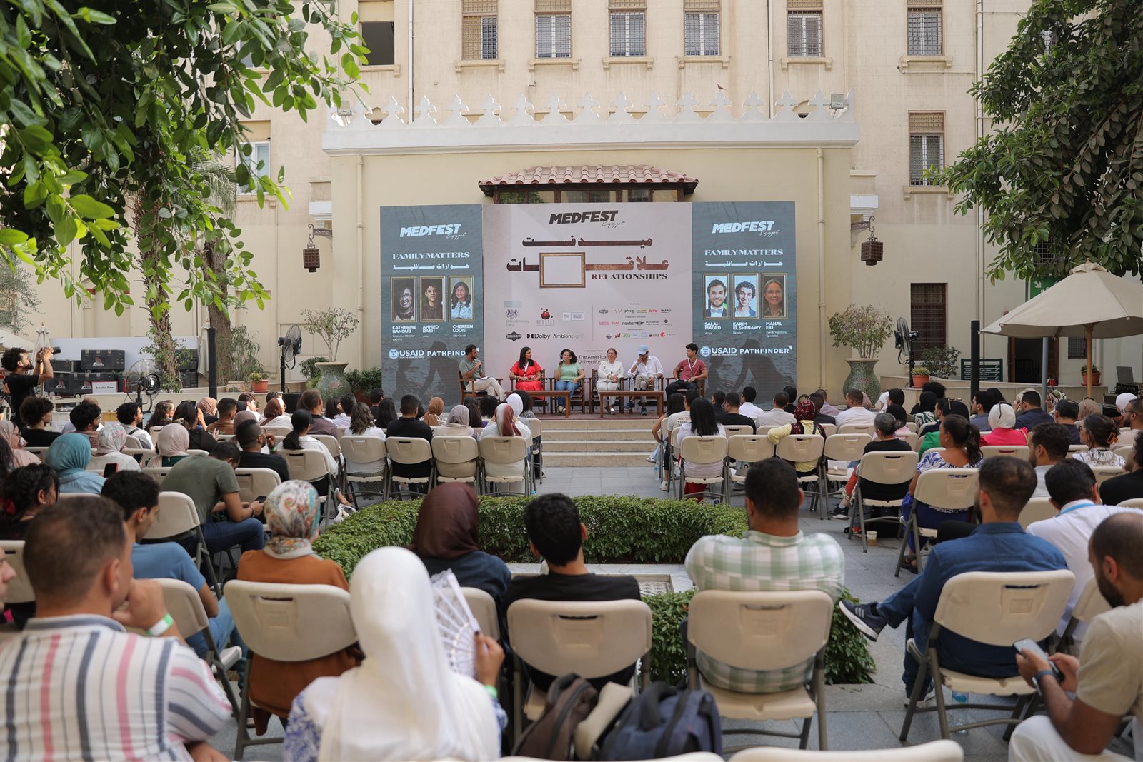 تحدث خلال الحلقة النقاشية، كلا من الفنان أحمد داش، المخرج كريم الشناوي وشيرين لويس استشاري نفسي وتربوي - منال عيد مدير فريق التنمية الإيجابية للشباب بمشروع أسرة – مؤسسة باثفايندر" وكاترين مدحت الشريك المؤسس لمهرجان ميدفست.