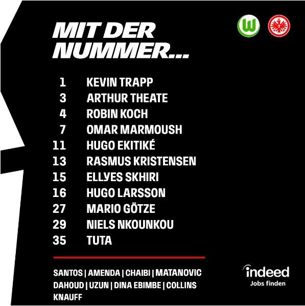 ويتواجد الدولي المصري عمر مرموش في التشكيل الأساسي لأينتراخت فرانكفورت في مواجهة فولفسبورج.