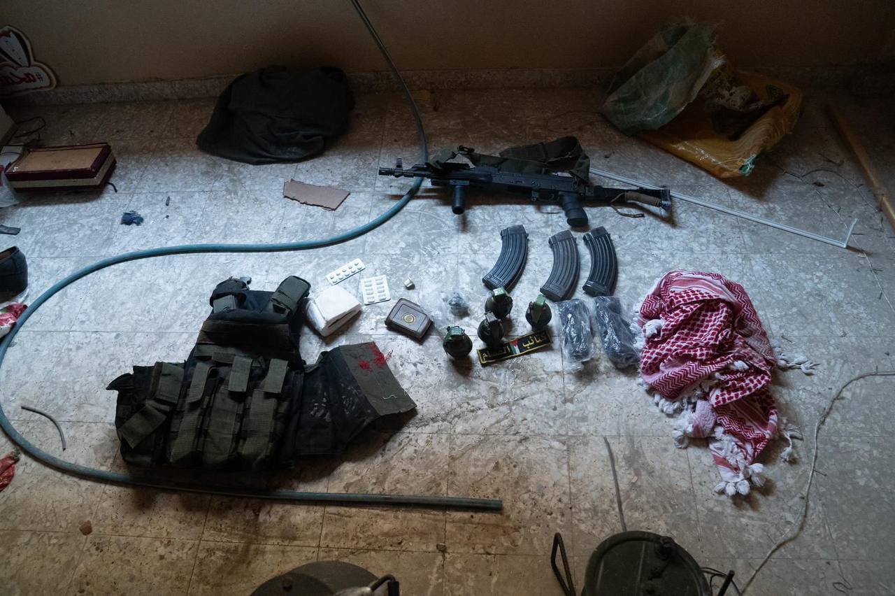 وأوضح أنه خلال أعمال التمشيط في المنطقة، استولى على مخزون من الوسائل القتالية احتوى على بنادق قناصة وأمشاط ذخيرة وقذائف مضادة للدروع وقنابل يدوية.