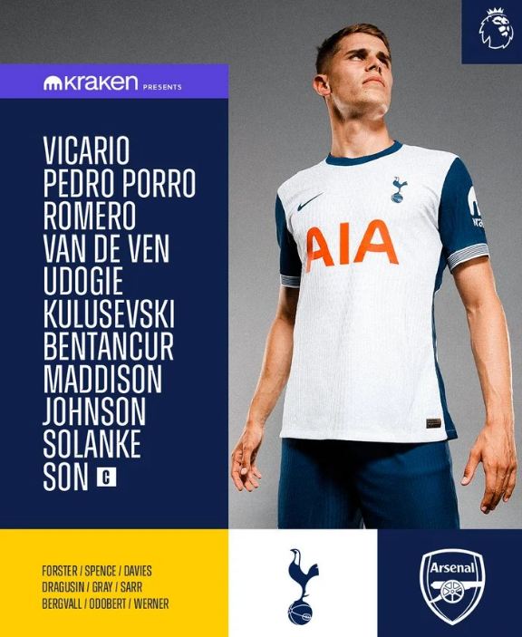 تشكيل توتنهام الرسمي ضد آرسنال في الدوري الإنجليزي