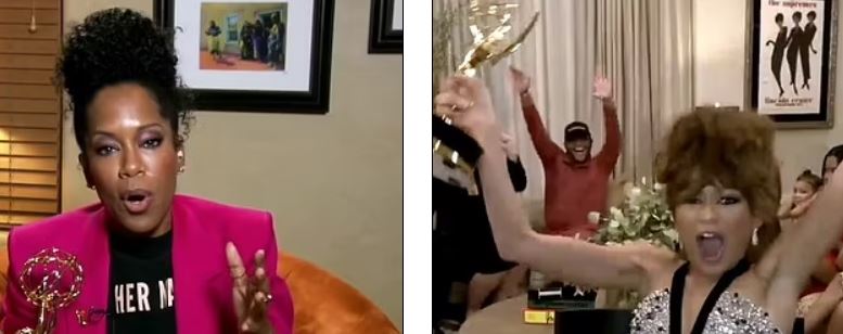 ولأول مرة على الإطلاق، استلم الفائزون جوائزهم من منازلهم التزامًا بقواعد التباعد الاجتماعي، خلال الحفل، حققت زندايا تاريخًا عندما أصبحت أصغر شخص يفوز بجائزة أفضل ممثلة رئيسية في مسلسل درامي في سن 24 عامًا عن عملها في Euphoria.