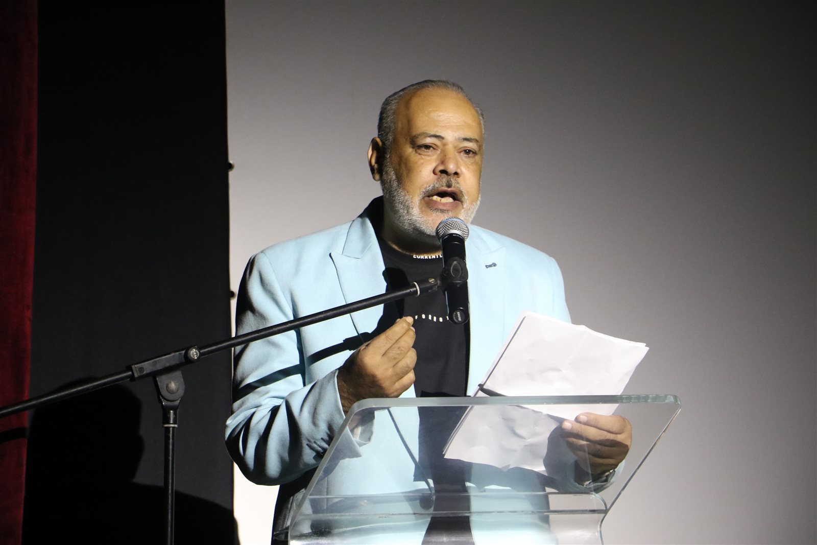 من ناحيته قدم رئيس المهرجان الشكر للجمهور الذي جاء ليؤكد على أهمية هذا المهرجان، كما أعرب عن سعادته بوجوده بين المسرحيين، مقدما الشكر لوزارة الثقافة والهيئة العامة لقصور الثقافة لدعمهما هذا المهرجان، ولكل من ساهم في إقامته.