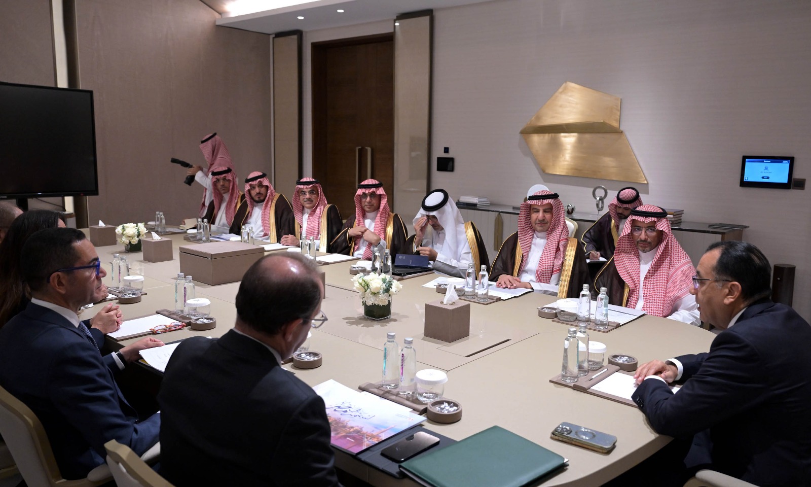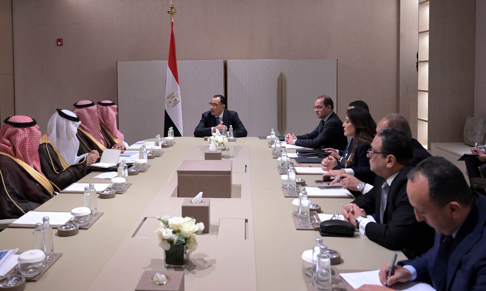 وخلال الاجتماع، أشار الدكتور مصطفى مدبولي إلى أنه التقى أمس عددًا من الوزراء السعوديين؛ حيث تم بحث العديد من الفرص الاستثمارية، مضيفًا: نعمل حالياً على الانتهاء من اتفاقية حماية الاستثمارات المشتركة، التي من شأنها أن تسهم في زيادة الاستثمارات بين البلدين، إذ يعمل حالياً عدد كبير من الشركات الاستثمارية المصرية في المملكة العربية السعودية، إضافة إلى استثمارات الشركات السعودية في مصر.