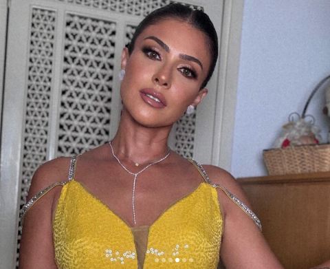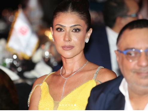 أما من الناحية الجمالية، اعتمدت تسريحة شعر جذابة ووضعت مكياجًا هادئًا مرتكزًا على الألوان الترابية مع تحديد عينيها بالكحل والماسكرا السوداء ولون الكشمير في الشفاه.