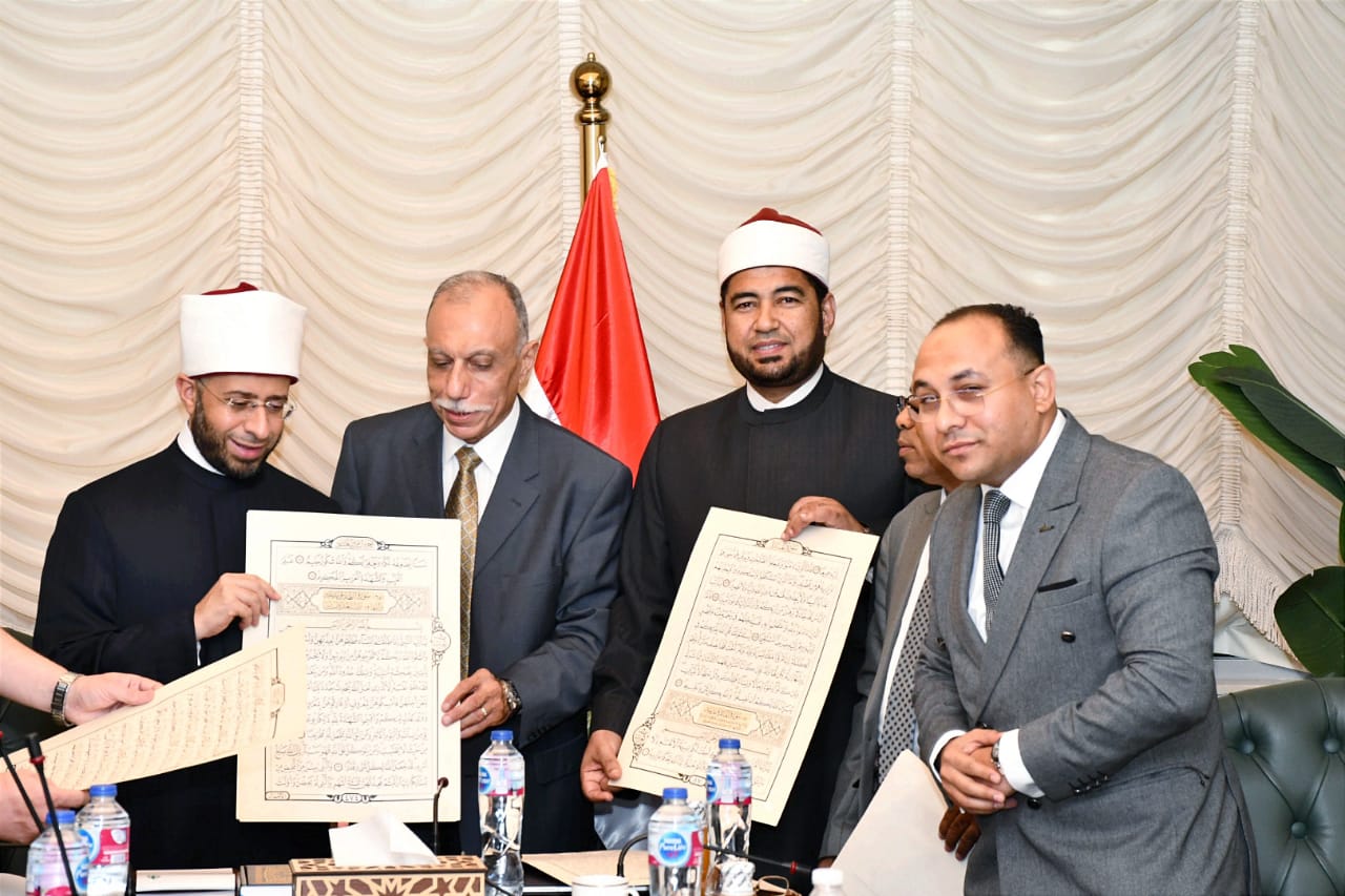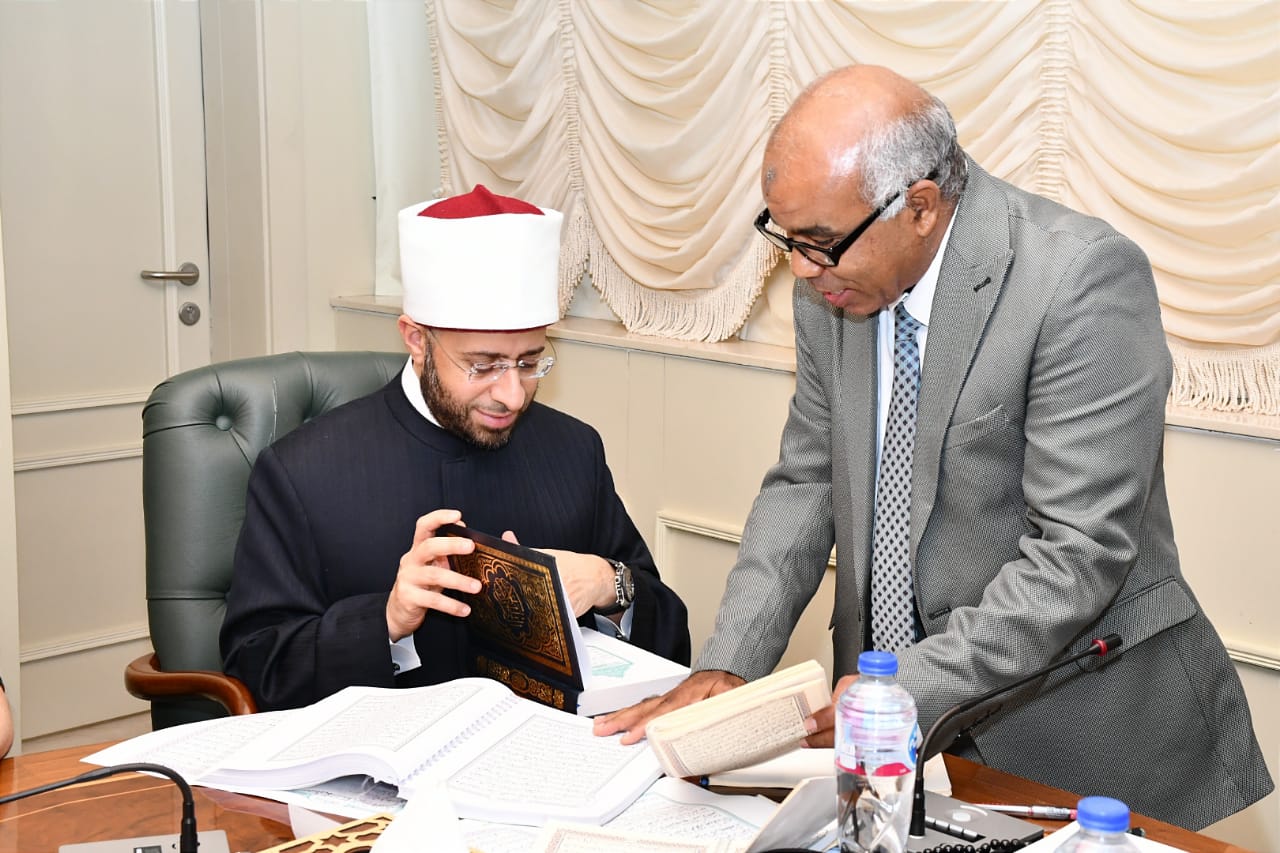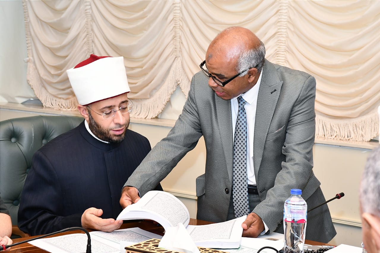 وفي بداية اللقاء أعرب الأستاذ الدكتور أسامة الأزهري وزير الأوقاف عن سعادته الغامرة وتشرفه بمناقشة الإصدار الثاني من كتاب الله (عز وجل) الموسوم بمصحف مصر، وهو المصحف الذي وجه بطباعته سيادة الرئيس عبد الفتاح السيسي رئيس الجمهورية عند افتتاح مسجد مصر الكبير ومركزها الثقافي الإسلامي بالعاصمة الإدارية الجديدة، حيث تم طباعة مصحف مصر على نسخة الشمرلي مختوم الآيات بالرسم العثماني برواية حفص عن عاصم بخط محمد سعد إبراهيم الشهير بحداد.