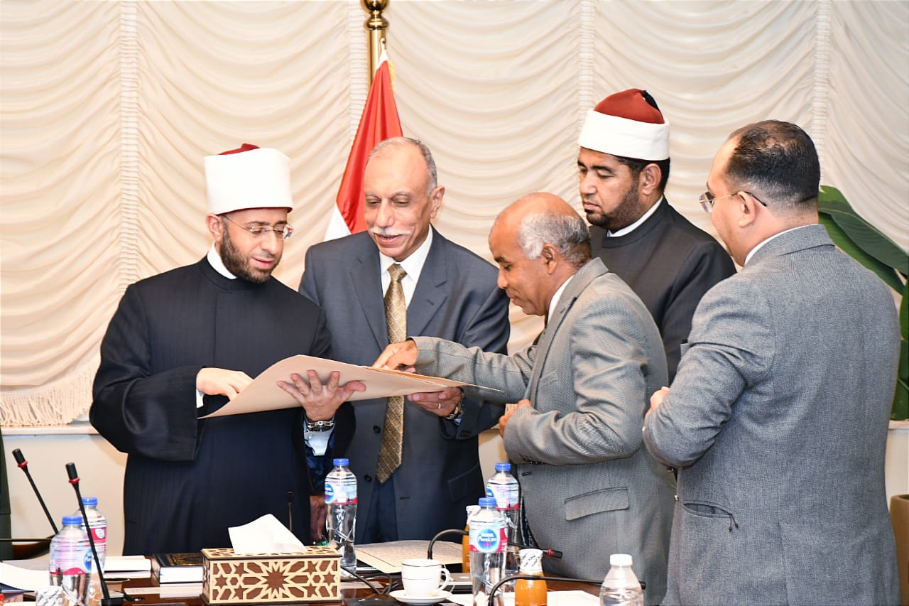 حضر اللقاء د. عبد الله حسن مساعد وزير الأوقاف للمتابعة، والكاتب الصحفي محمود الجلاد معاون وزير الأوقاف للإعلام.