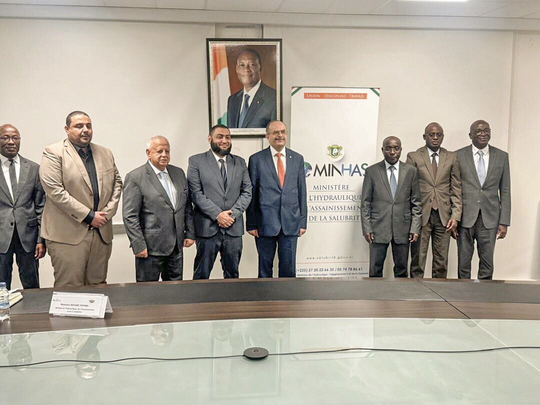 وقع بواكي فوفانا وزير المياه والصرف الصحي والصحة، بدولة كوت ديفوار والمهندس أحمد العصار رئيس شركة المقاولون العرب، عقد تنفيذ مشروع إنشاء 6 محطات لمعالجة مياه الصرف الصحي فى 6 مدن بدولة كوت ديفوار.