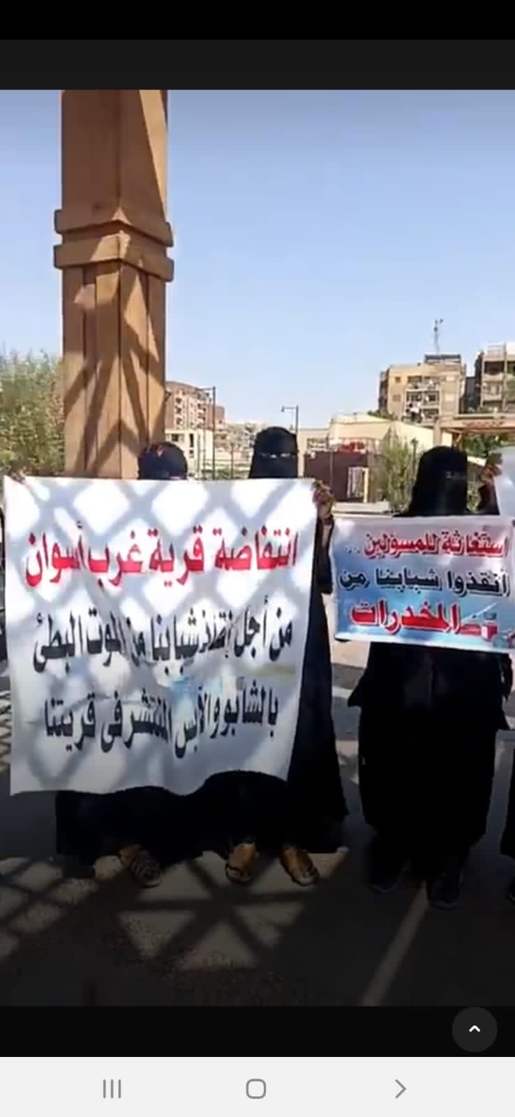 استغاثت سيدات النوبة وتحديدًا قرية غرب أسوان بوزير الداخلية، اللواء محمود توفيق، ومدير الأمن  اللواء محمد أبوالليل، واللواء إسماعيل كمال محافظ أسوان من ترويج وتجارة المخدرات بشكل مكثف داخل القرية خلال الأونة الاخيرة مما يعرض حياة الاهالي للخطر.
