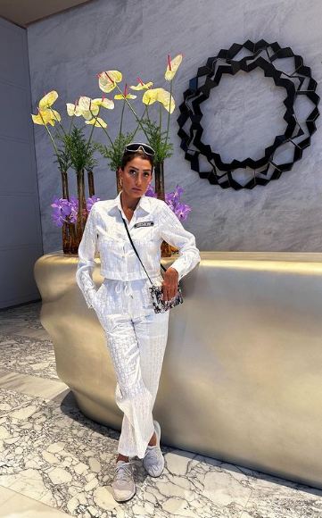 وبدت غادة عبدالرازق بإطلالة كاجوال، عكست شبابها وتناسق قوامها الرشيق، حيث ارتدت بدلة بيضاء بجاكيت قصير باللون الأبيض، فيما انتعلت حذاءً رياضيًا بنفس اللون.