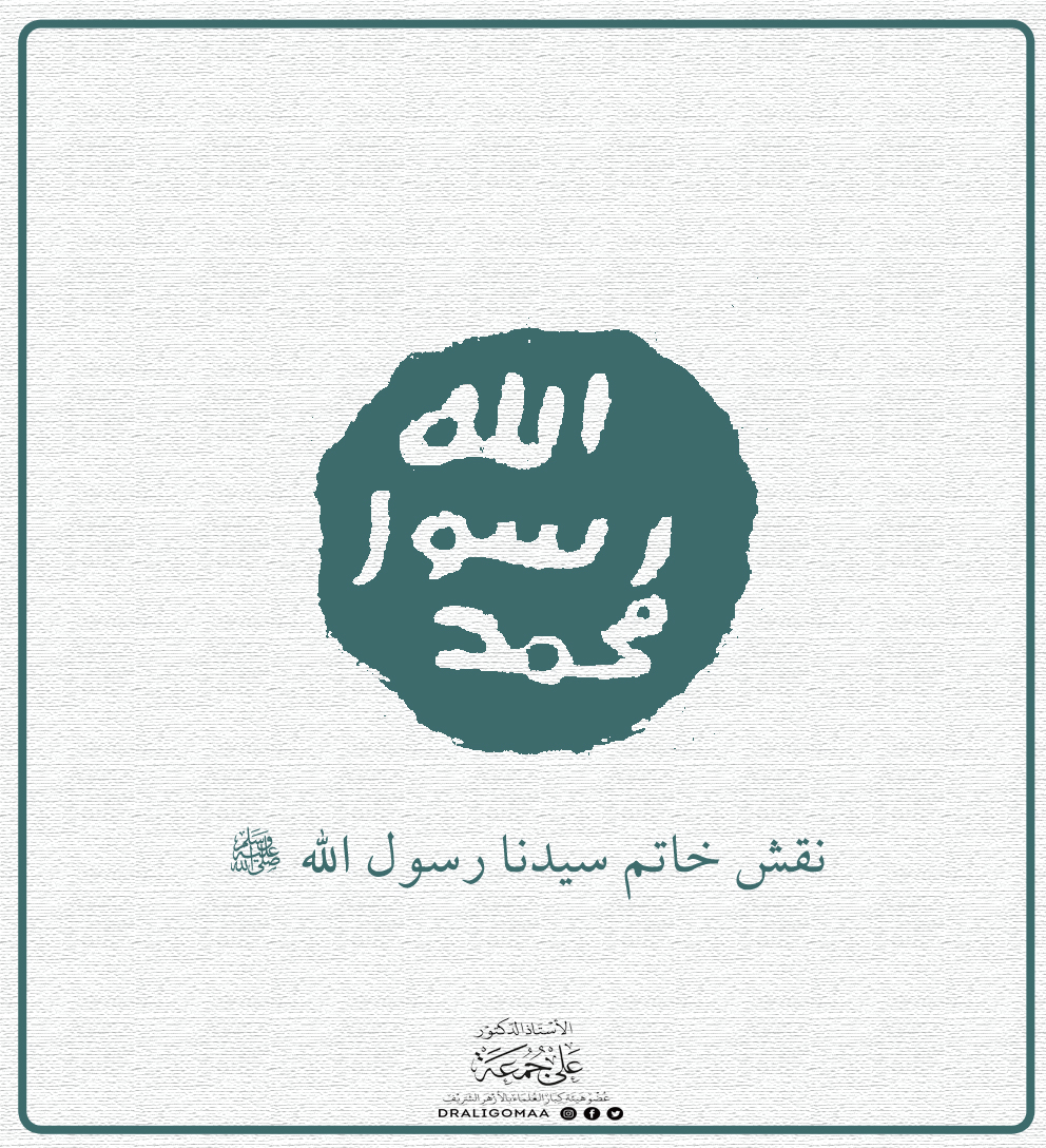 قال الدكتور علي جمعة عضو هيئة كبار العلماء، ومفتي الجمهورية السابق إن خاتم النبي الشريف لم يزد في وزنه عن درهمين (ستة جرامات)، بفص عقيق وهو من أرخص أنواع الأحجار -وإلى يومنا هذا-، نَقْشُهُ: الله، وتحته بسطر: رسول، وتحتها بسطر: محمد؛ فتقرأ من أسفل إلى أعلى: الله - رسول - محمد.