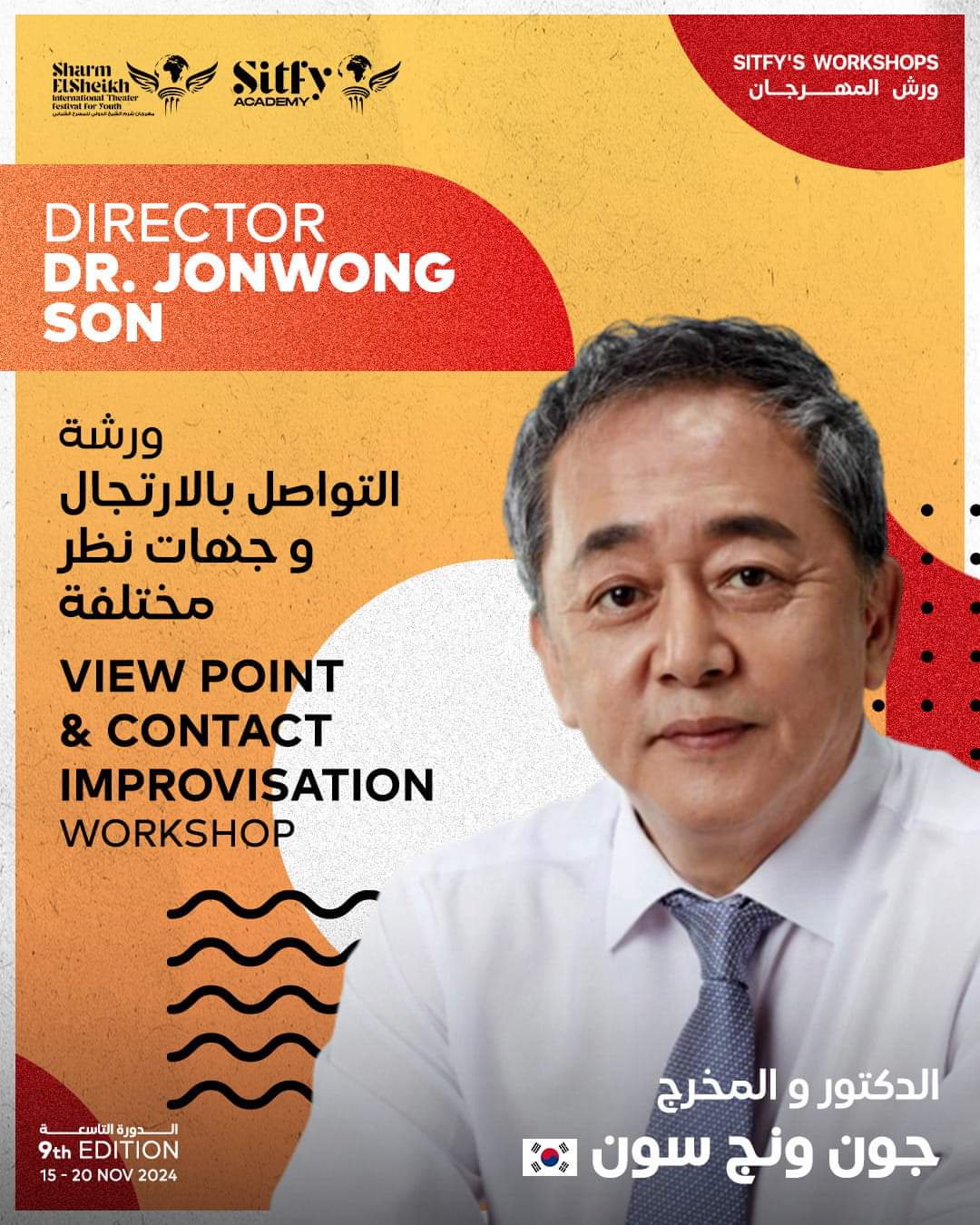 ويقدم ورشة "التواصل بالارتجال وجهات نظر مختلفة " المدرب والفنان د. جون وونج سون من كوريا الجنوبية، وهو عضو مجلس إدارة مسرح دايجون، ورئيس الجمعية الكورية للمسرح ،ورئيس مهرجان دايجون الدولي والمدير الفني للمهرجان الوطني للمسرح في كوريا، وحصل على العديد من الجوائز بمهرجانات متعددة.