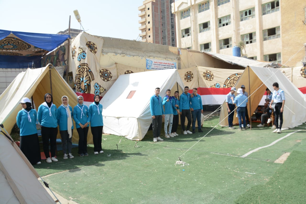 حيث تفقدت محافظ البحيرة الفرق المشاركة في إقامة الخيام وأماكن الإقامة للفرق وكل ما يلزم المعسكر من تجهيزات وأعمال فنية تم تدريب الشباب عليها ضمن أنشطة الجوالة التي تنفذها مديرية الشباب والرياضة بمراكز الشباب.