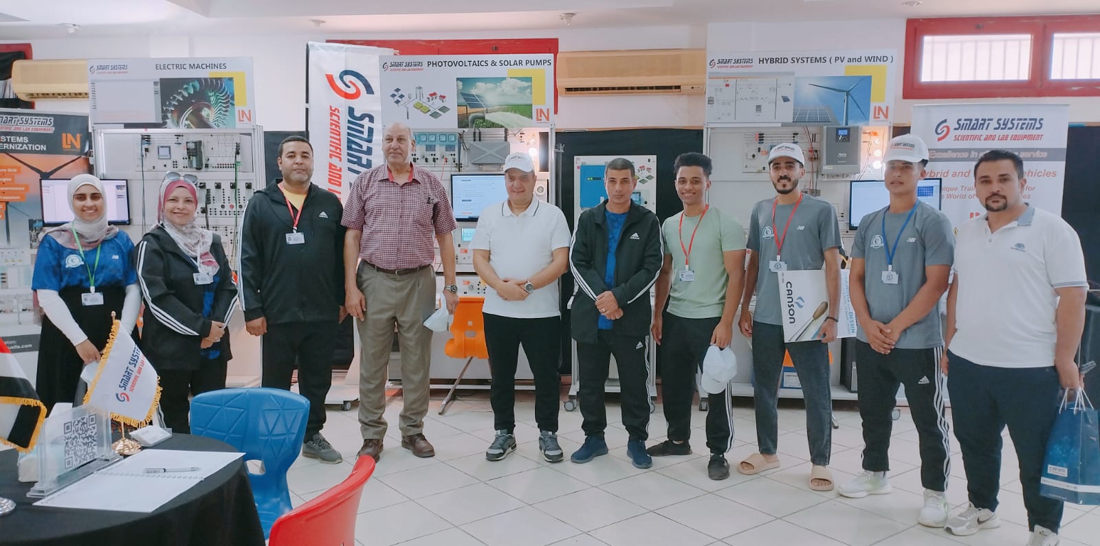 وتفقد رئيس الجامعة ونائب رئيس الجامعة، جناح شركة smart systems إحدى الشركات الراعية لأسبوع شباب الجامعات التكنولوجية، والمتخصصة في توريد وتركيب وصيانة وتشغيل الأجهزة العلمية والمعملية.