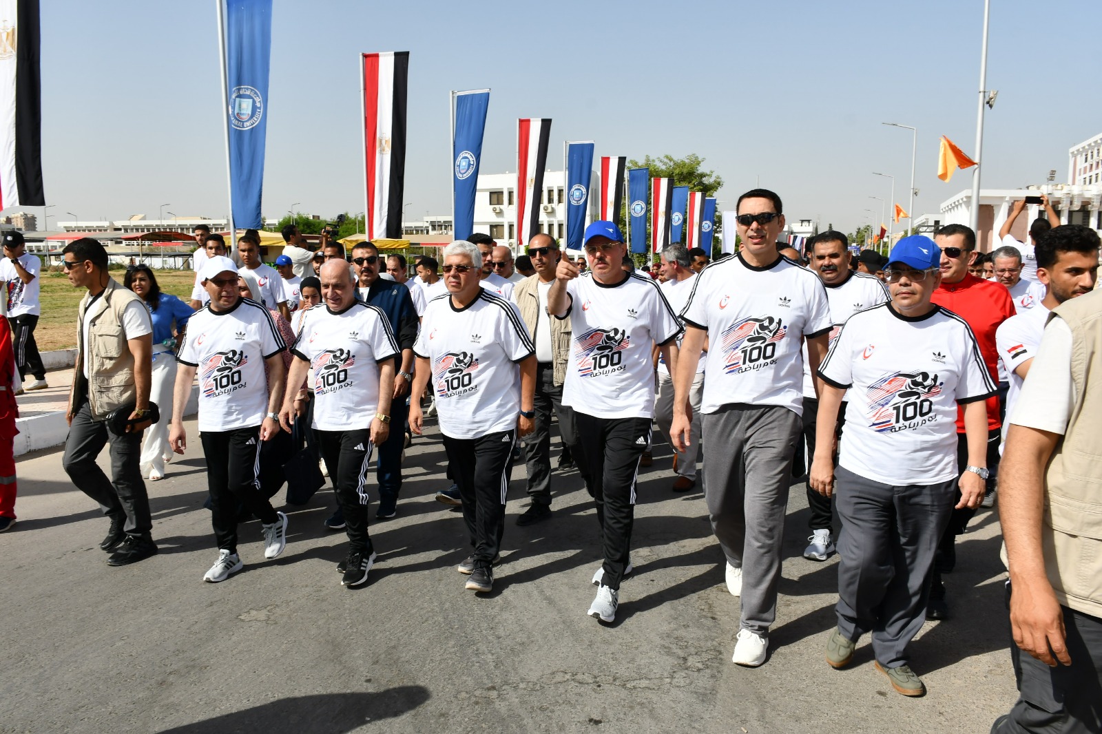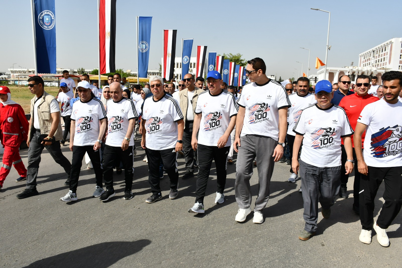 تقدم وزير التعليم العالي والبحث العلمي الدكتور محمد أيمن عاشور، والدكتور ناصر مندور رئيس جامعة قناة السويس، صباح اليوم الجمعة الموافق 20 سبتمبر، مسيرة حاشدة، لتدشين مبادرة 100 يوم رياضة، وذلك ضمن المبادرة الرئاسية "بداية جديدة لبناء الإنسان" والتي أطلقها الرئيس عبد الفتاح السيسي للتنمية البشرية ، للمساهمة في تحقيق أهداف ورؤى الجمهورية الجديدة وتحقيق أهداف التنمية المستدامة 2030.