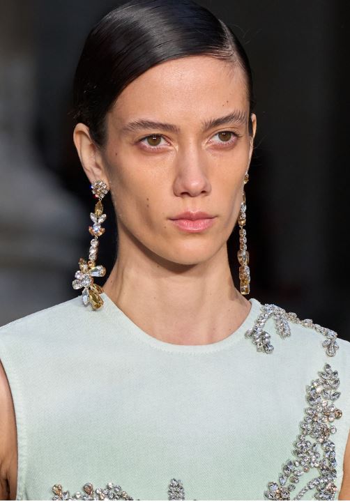 وضعت دور الأزياء العالمية خلاصة إبداعاتها في تصميم الأقراط؛ فقد تفننوا في تزيينها بالكريستالات التي نقلتها إلى مستوى آخر من فخامة وحولتها إلى قطع Statement ستكون الرفيقة المثالية لكل امرأة أنيقة في 2025، وقد تألقت عارضات ماركة إرديم Erdem بموديلات طويلة تلامس الكتفين مصممة على شكل ورود وأوراق شجر، وظفيها لإكمال إطلالة ناعمة بفستان سادة بلون باستيلي، واختاري الحقيبة والحذاء باللون الفضي الدارج.