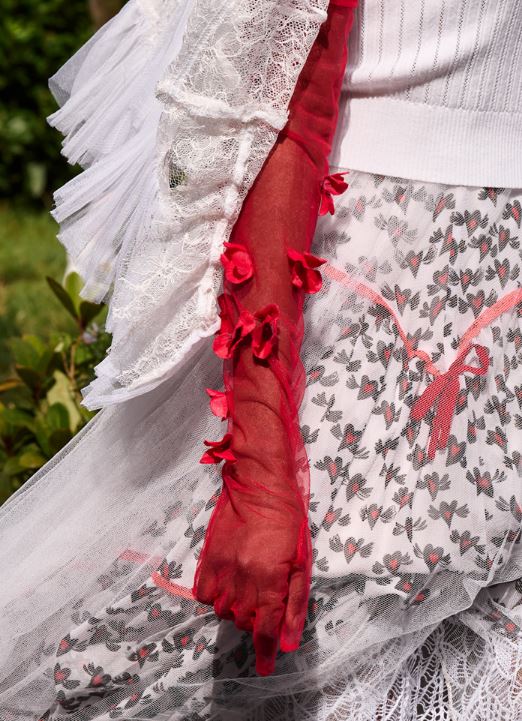 وارتكز اهتمام المصممين هذا العام على الأكسسوارات ذات الطابع الكلاسيكي والفيكتوري، فتكررت القفازات الطويلة في عروض كثيرة، ولكن هذا العام قُدمت من الشيفون الملون والمطرز، وجدنا لدى ماركة بورا أكسو Bora Aksu قفازات حمراء مزينة بالورود البارزة، لا تتردي في التأنق بها خلال سهرات نهاية العام؛ فلونها الاحتفالي سيغنيك عن اعتماد الفساتين الحمراء التي لا تجرئين على الظهور بها.