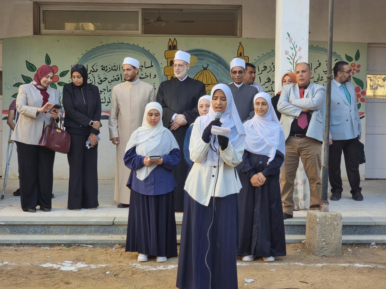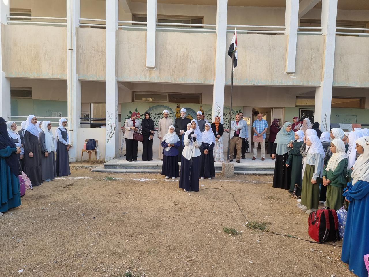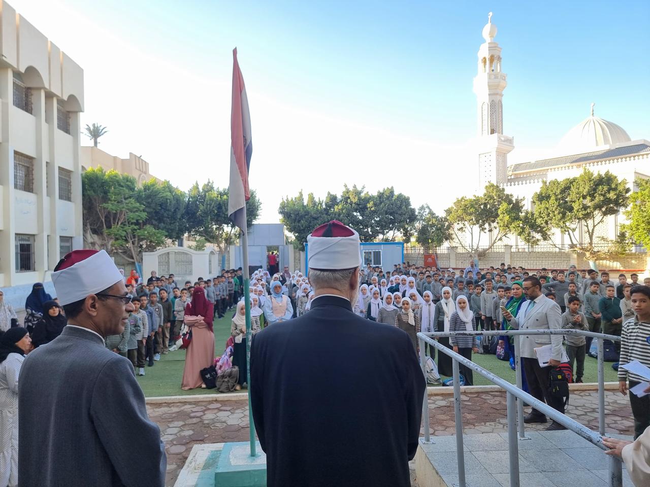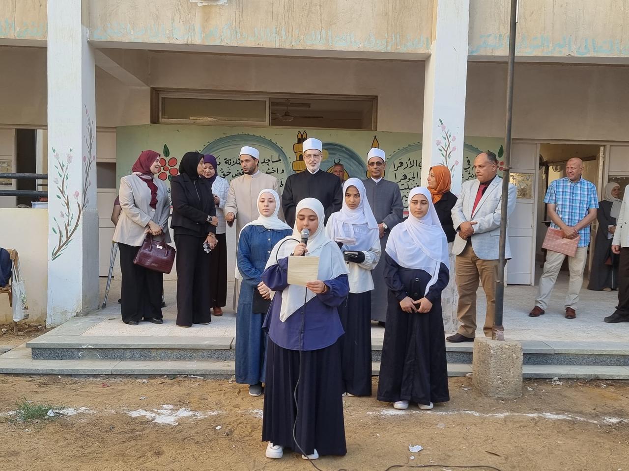 وخلال كلمته بطابور الصباح، هنأ وكيل الأزهر المعلمين والطلاب وجميع القائمين على العملية التعليمية بالمعاهد الأزهرية، بمناسبة بدء العام الدراسي الجديد، ناقلا لهم تحيات فضيلة الإمام الأكبر، شيخ الأزهر، ودعواته لهم بالتوفيق والسداد في عامهم الدراسي الجديد.