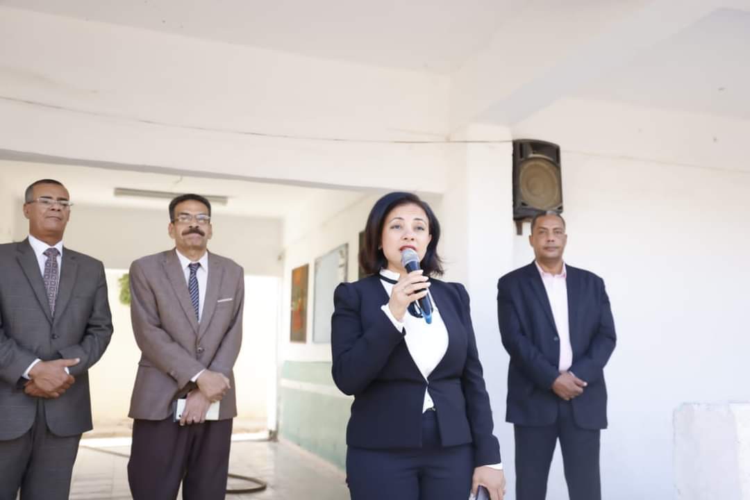 وخلال كلمتها بالطابور الصباحي للمدرسة، قدمت نائب المحافظ التهنئة لجميع قيادات التربية والتعليم والطلاب والمدرسين بمناسبة بداية العام الدراسى الجديد، مطالبة بانتظام العملية التعليمية، مؤكدة على حسن العلاقة بين المعلم والطلاب، حيث إن المعلم هو الأب، والموجه والقدوة.