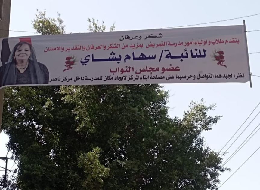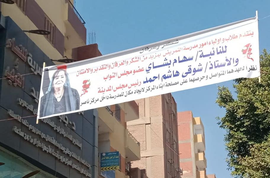 وجه أولياء أمور طالبات مدرسة التمريض بالشكر والتقدير للنائبة سهام بشاي؛ وذلك لمجهودها في تدبير مكان مؤقت لمدرسة التمريض بناصر حتي يتثنى للطالبات الدراسة داخل مدينة ناصر دون عناء السفر مع توفير عنصر الأمان ولقلة التكلفة والوفت والجهد.