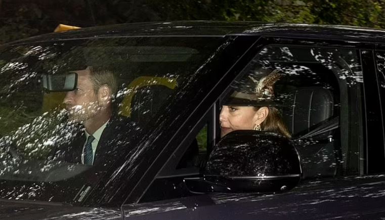 وظهر الأمير ويليام يقود سيارته مع زوجته إلى كنيسة كارثي كيرك القريبة، وكانت الأميرة ترتدي قبعة ريفية مفضلة مع ريش ومعطف من التويد.
