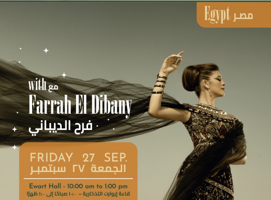 تُحيي السوبرانو العالمية فرح الديباني ليلة غنائية في القاهرة، ضمن مهرجان هي الفنون بالتزامن مع بداية الموسم الشتوي للحفلات.