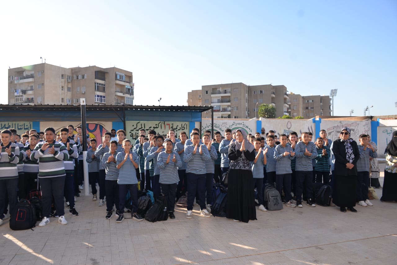 ثم قام محافظ الإسماعيلية ومرافقوه بزيارة مدرسة ١٦ أكتوبر الإعدادية بنين، وحرص على حضور طابور الصباح، وأداء تحية العلم.