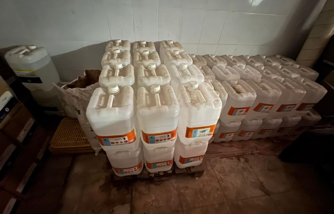 وبتقنين الإجراءات، ودخول المكان؛ تم ضبط عدة مخالفات، من إدارة منشأة بدون ترخيص لمخزن غير مرخص وغير مستوفي الاشتراطات الصحية، والقيام بتعبئة وتصنيع المستحضرات طبية، وضبط كمية من المستحضرات الطبية داخل المخزن مجهولة المصدر بدون فواتير، والمواد الخام مجهولة المصدر بدون فواتير، كميات من الجراكن والعبوات الفارغة التي تستخدم في التعبئة، ووجود ماكينة تعبئة، خمسة تانكات تحضير مواد خام، وميزان، وماكينة إنتاج.
