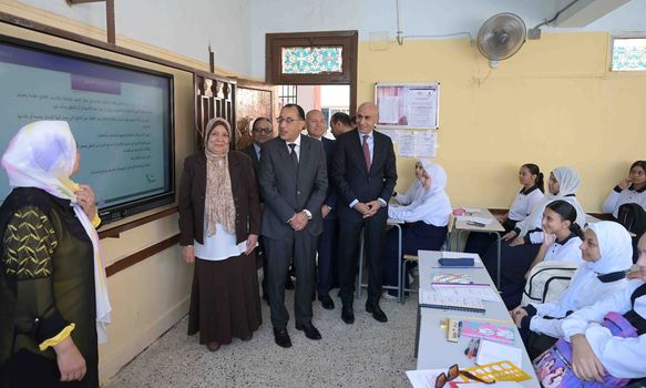 وبدأ الدكتور مصطفى مدبولي زيارته للمدرسة بتفقد عدد من الفصول للصفين الأول والثاني الثانوي، وخلال تواجده بأحد فصول المدرسة التي أنشئت عام 1991، أجرى مدبولى حوارا وديا مع عدد من طالبات الصف الأول الثانوي حول المناهج الدراسية، ورأيهن في كثافة الفصول بعد القرارات التي تم اتخاذها لتخفيض عدد الطالبات في الفصل الواحد، حيث أشادت الطالبات بتقليص عدد الطالبات في الفصل، وأكدن أن هذا الأمر انعكس بشكل إيجابي عليهن من حيث أتاح لهن أجواء صحية أكثر، وفرصة أكبر للاستيعاب والاستفسار من المعلمين حول المناهج الدراسية.