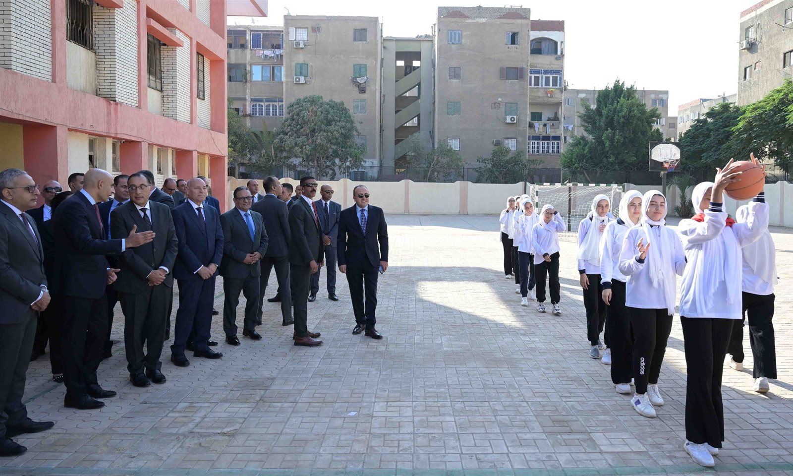 وحرص رئيس مجلس الوزراء، خلال تواجده بالمدرسة، على تفقد دورات المياه ومستوى نظافتها، في إطار الحرص على سلامة وصحة أبنائنا الطلاب والطالبات، كما تفقد المكتبة المدرسية، واستفسر عن مدى اقبال الطالبات على القراءة والمراجعة بها، وتابع أيضاً في فناء المدرسة جانبا من أداء الطالبات للعبة السلة في إطار حصة التربية الرياضية.