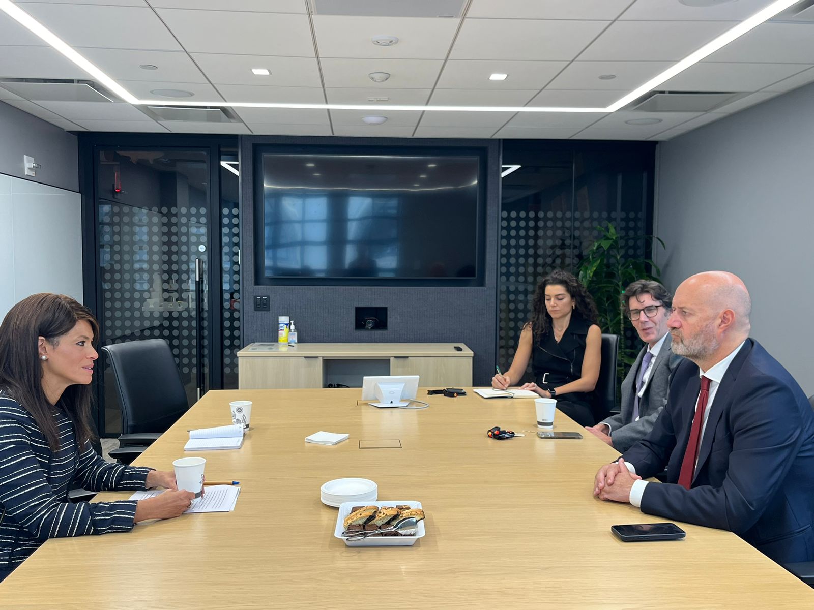في سياق آخر، التقت الدكتورة رانيا المشاط، السيد/ نيكولا فيلا، نائب الرئيس التنفيذي لشركة ماستركارد، حيث ناقش الجانبان مجالات التعاون المحتملة في مجال ريادة الأعمال والابتكار، في ضوء جهود الدولة لتعزيز التحول الرقمي، وبناء اقتصاد تنافسي، وتعزيز النمو الاقتصادي المرن والمستدام.