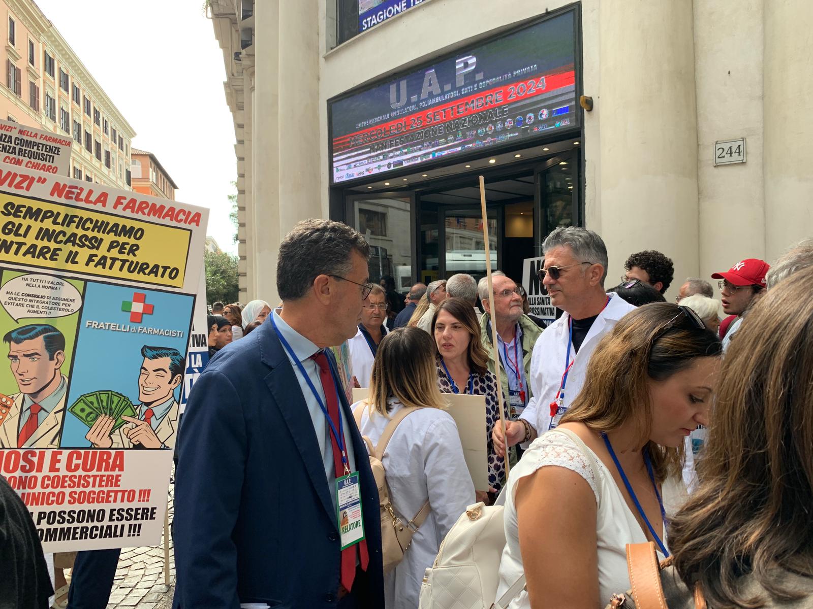 وبعد إنتهاء أعمال المؤتمر تجمع المشاركون وأنضم إليهم عدد كبير من العاملين بالمجال الصحي وتوجهوا إلي مقر مبني وزارة الصحة الإيطالية لعرض مطالبهم علي وزير الصحة رافعين لافتات معبرة عن معاناتهم .