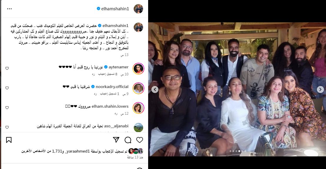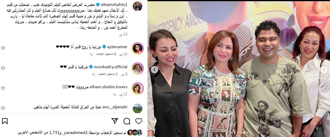 خطفت النجمة إلهام شاهين عدسات الصحافة والإعلام اثناء ظهورها في العرض الخاص "عنب" وشاركت متابعيها بأحدث إطلالتها عبر حسابها الشخصي بموقع تبادل الفيديوهات والصور إنستجرام.