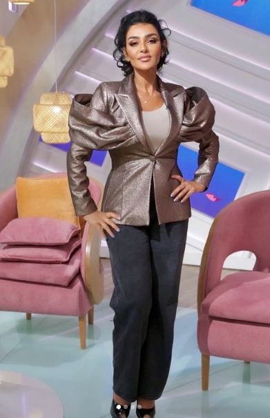 وبدت هبة الإباصيري بإطلالة عصرية مزجت بين الأناقة والاحتشام في آن واحد، حيث ارتدت بادي ونسقت عليه جاكيت بأكمام منتفخة مع بنطال جينز فيما انتعلت حذاء بكعب عال.