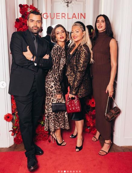 واختارت ترك خصلات شعرها منسدلة بحرية فوق كتفيها بشكل ناعم ووضعت مكياجًا صاخبًا لتبرز سحر ملامحها بشكل واضح مع لون الأحمر الصارخ في الشفاه.