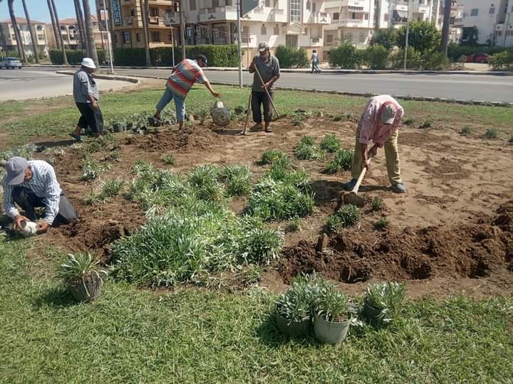 رفع كفاءة المساحات الخضراء بمدينة رأس البر
