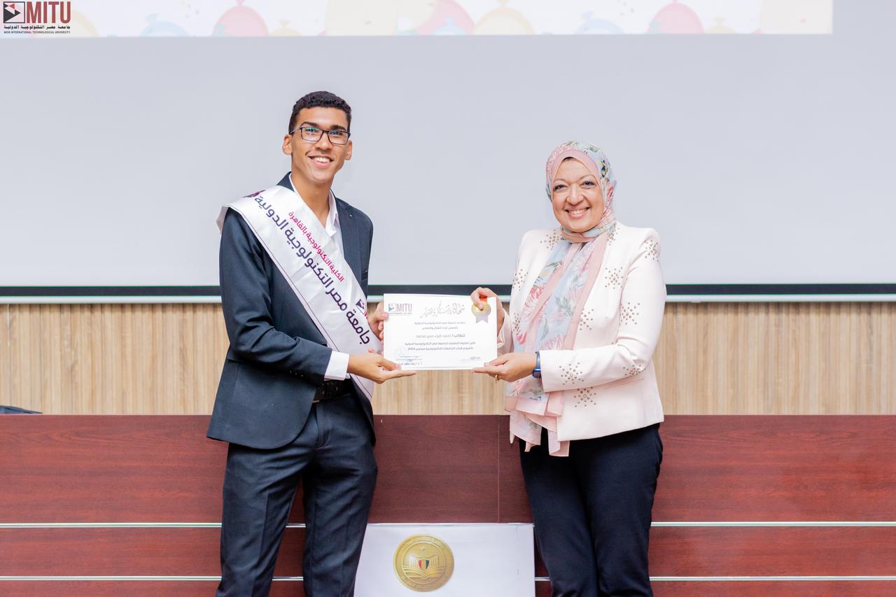كرمت الدكتورة رشا سعد شرف الأمين العام لصندوق تطوير التعليم برئاسة مجلس الوزراء المشرف على جامعة مصر التكنولوجية الدولية الطلاب الفائزين بالمراكز المتقدمة بأسبوع شباب الجامعات التكنولوجية سبتمبر 2024.