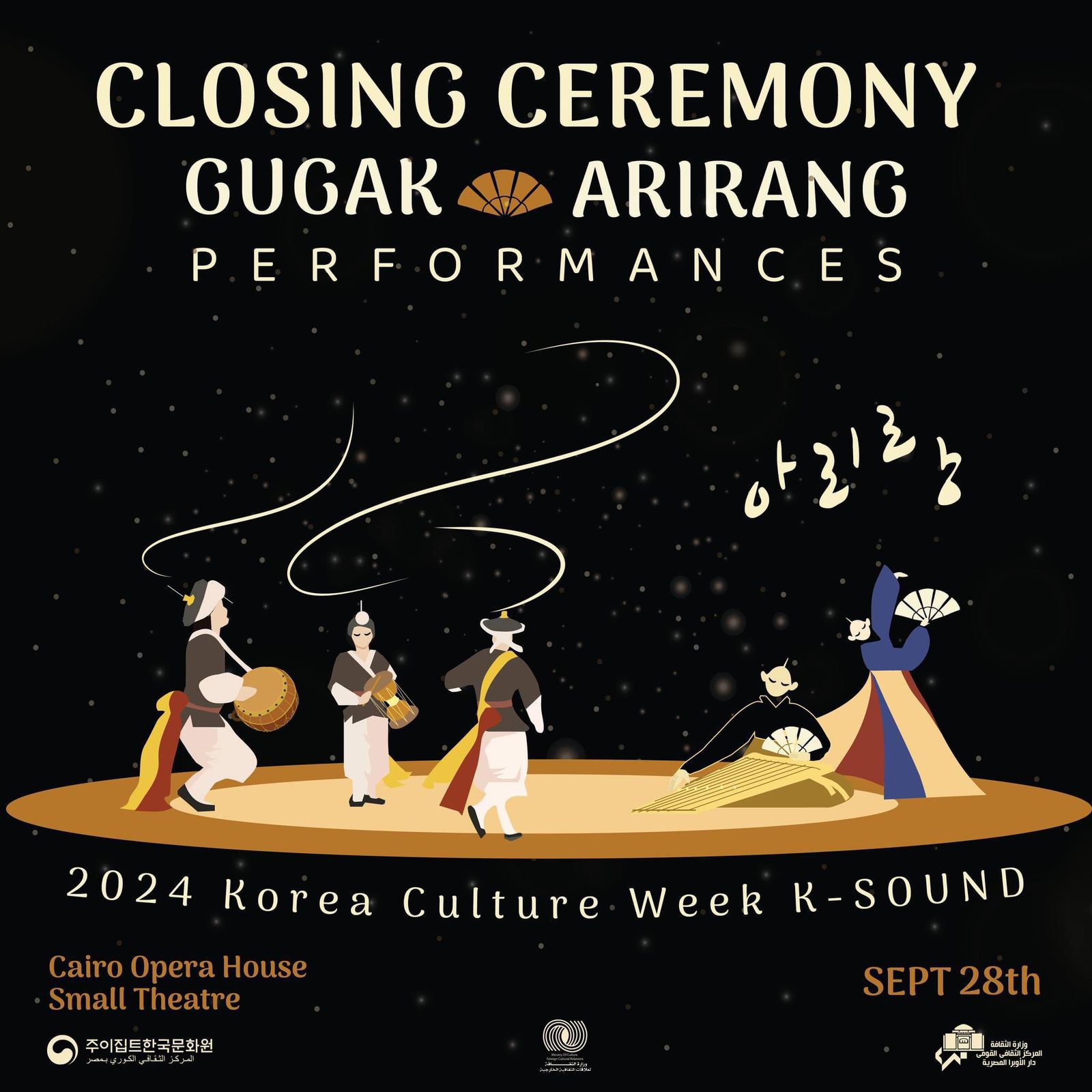 يتضمن البرنامج حفل ختامى لفعاليات أكاديمية الموسيقى التقليدية الكورية " جوجاك" لعام ٢٠٢٤، بالإضافة إلى عرض موسيقي خاص من قبل المدربين باك جاي هيونج من اكاديمية الموسيقى التقليدية الكورية والمدربين نوه يون جي وإوم يي جين لورشة عمل "آريرانج".