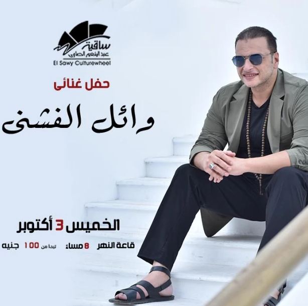 يستعد الفنان وائل الفشني، لإحياء حفل غنائي على خشبة مسرح قاعة النهر في ساقية الصاوي، وذلك في تمام الثامنة مساء الخميس الموافق 3 أكتوبر المقبل، وسعر التذكرة 100 جنيه.